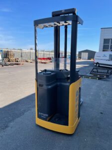 - Descriere: Reach trucks pentru culoare înguste și înălțimi mari de ridicare (până la 12 m). Capacitate 1,4 – 2,5 t. Echipamente ergonomice, cu cabină confortabilă și control electronic fin.