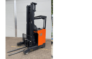 • Descriere: Reach trucks cu catarg retractabil, capacitate între 1,4 – 2,0 tone. Ideal pentru culoare înguste și rafturi înalte (până la 11–12 m). Design compact, stabilitate și control fin al catargului.