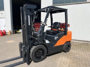 • Descriere: Stivuitoare diesel robuste, capacitate 1,5 – 25 tone. Destinate pentru aplicații grele și industriale. Echipate cu motoare Doosan sau Kubota conforme Stage V, frâne în baie de ulei și protecții anti-praf.