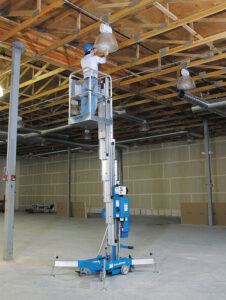 - Descriere: Nacele cu catarg vertical, ideale pentru întreținere interioară. Capacitate de 227 kg și înălțime de lucru până la 8 m. Operare electrică, ușor de manevrat.