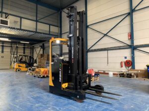- Descriere: Stivuitoare cu catarg retractabil, capacitate de 1,6 – 2,5 tone. Pot atinge înălțimi de peste 11 m. Echipate cu control de stabilitate, direcție electrică și cabină ergonomic adaptată pentru operatori.