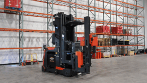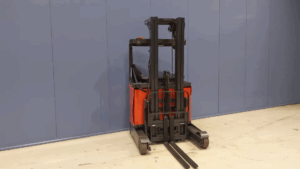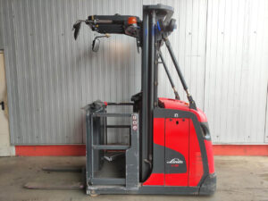 - Descriere: Stivuitoare pentru culoare foarte înguste (1,6–1,8 m), capabile să ridice marfa la peste 14 m. Echipate cu cabină ridicabilă și cap de ridicare rotativ.